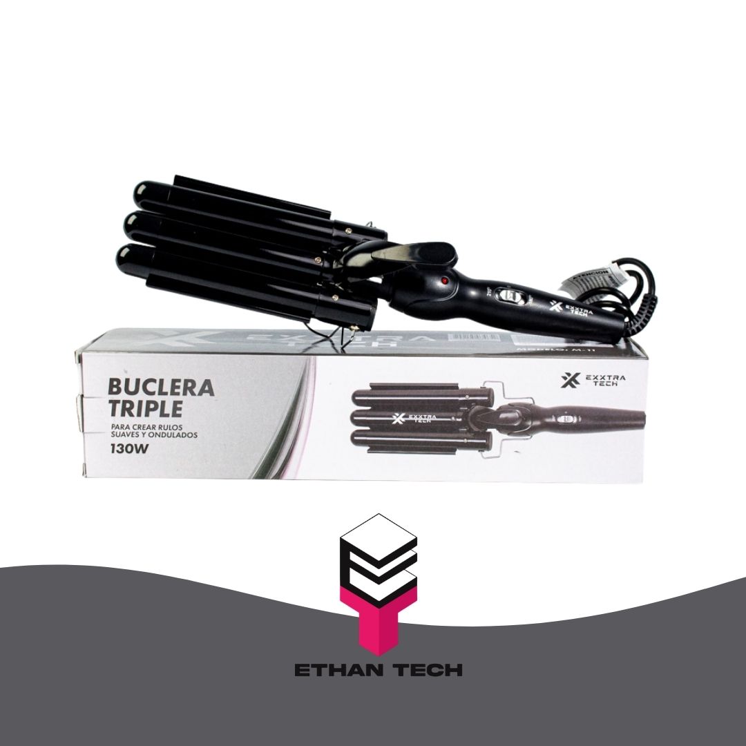 Exxtra Tech Buclera Triple – Para Crear Rulos Suaves y Ondulados 130W