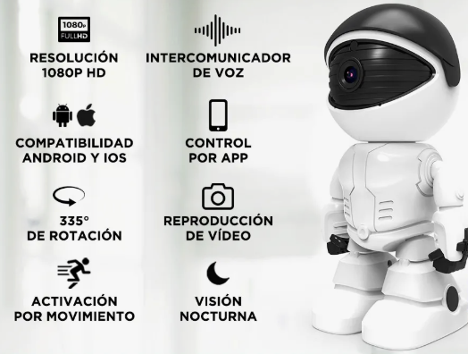 El formato de robot de la cámara no solo es funcional, sino que también se integra de manera discreta en cualquier ambiente, brindando una solución de vigilancia que combina tecnología y diseño. Ideal para padres que desean monitorear a sus hijos o para quienes buscan una mayor seguridad en su hogar, es una herramienta confiable y eficiente para la vigilancia diaria.